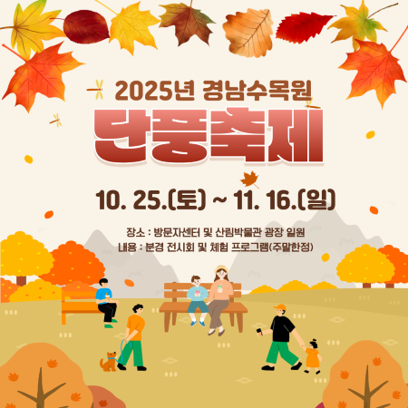 안녕하세요! 오늘은 가을의 낭만을 가득 담은 ‘2025년 경상남도수목원 단풍축제’ 소식을 전해드리려 해요 🍁 올해 처음 열리는 이 축제는 10월 25일부터 11월 16일까지 진행된답니다. 자연 속에서 전시와 체험을 동시에 즐길 수 있는 가족 나들이형 축제로, 가을 감성을 한껏 느낄 수 있어요!