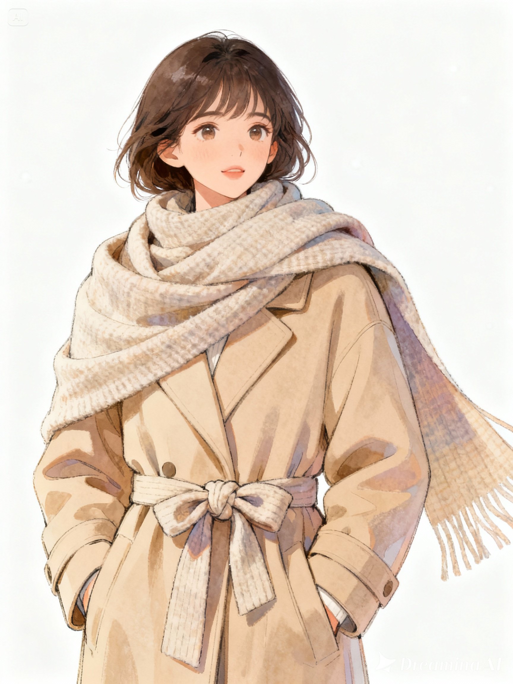 풍성한 니트 목도리보다, 얇은 울·캐시미어류 목도리가 더 깔끔하게 정리돼요!